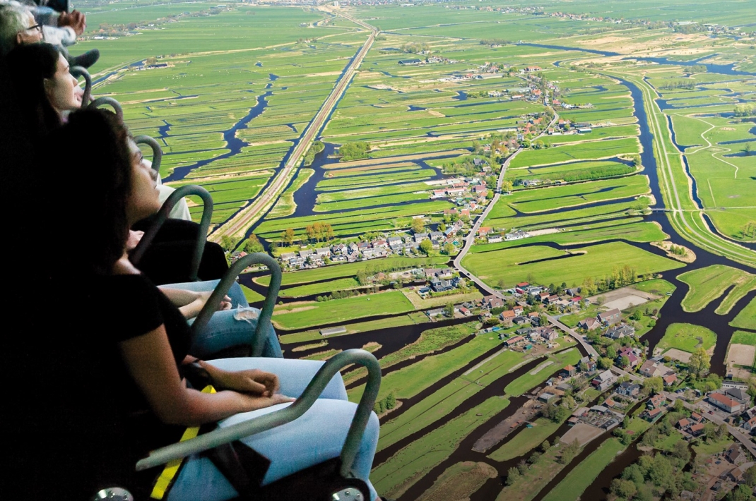 Visitors embark on a journey through the Netherlands like never before, enjoying windmills at Kinderdijk, historic canals of Amsterdam, and other cultural and natural wonders, all from a thrilling aerial perspective. The attraction seamlessly integrates advanced motion simulation technology, stunning 360-degree visuals, and multi-sensory effects—including wind, scents, and mist, creating a fully immersive flying experience.