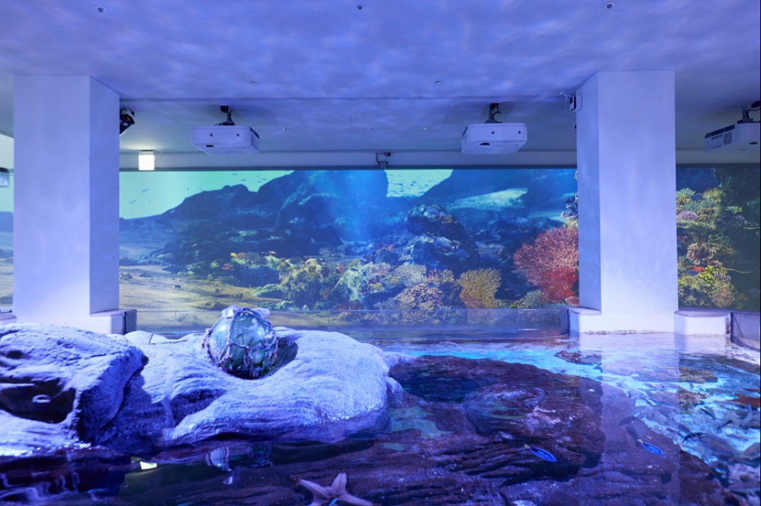 • The reception area Originate of Marine: a high-resolution digital content live broadcasting through 5G that presents the beauty of the ocean.