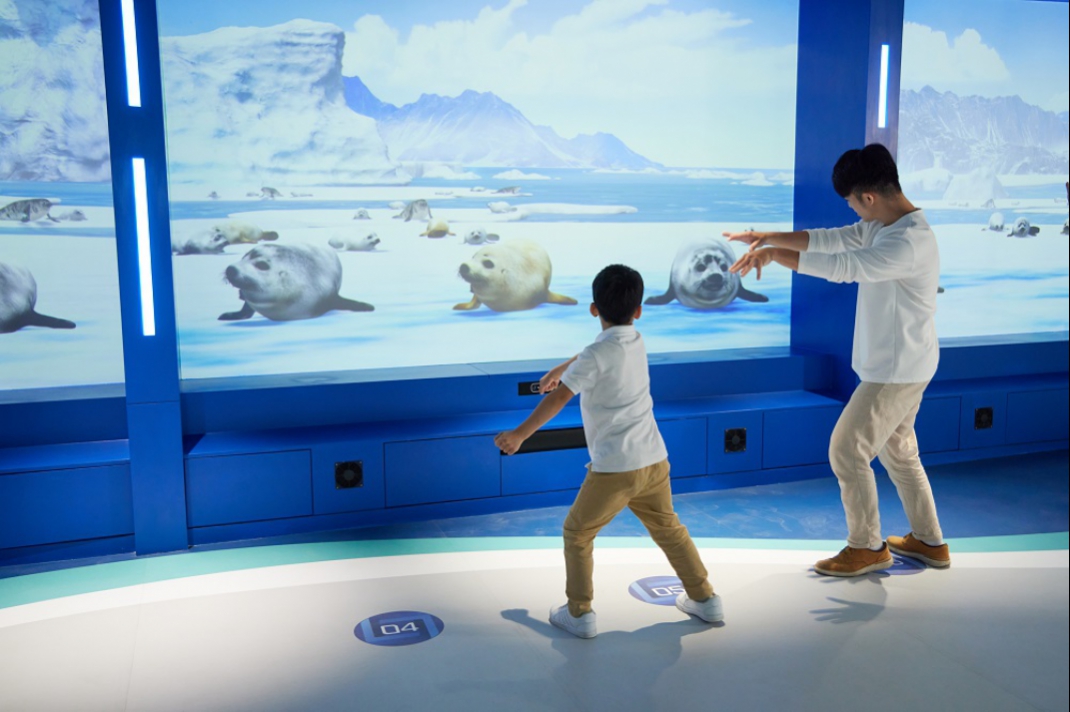 • 「潮间走廊」:三大互动体验区域,包含生物保卫站「海豹家族」,以姿态辨识的互动科技让游客喂食可爱的小海豹