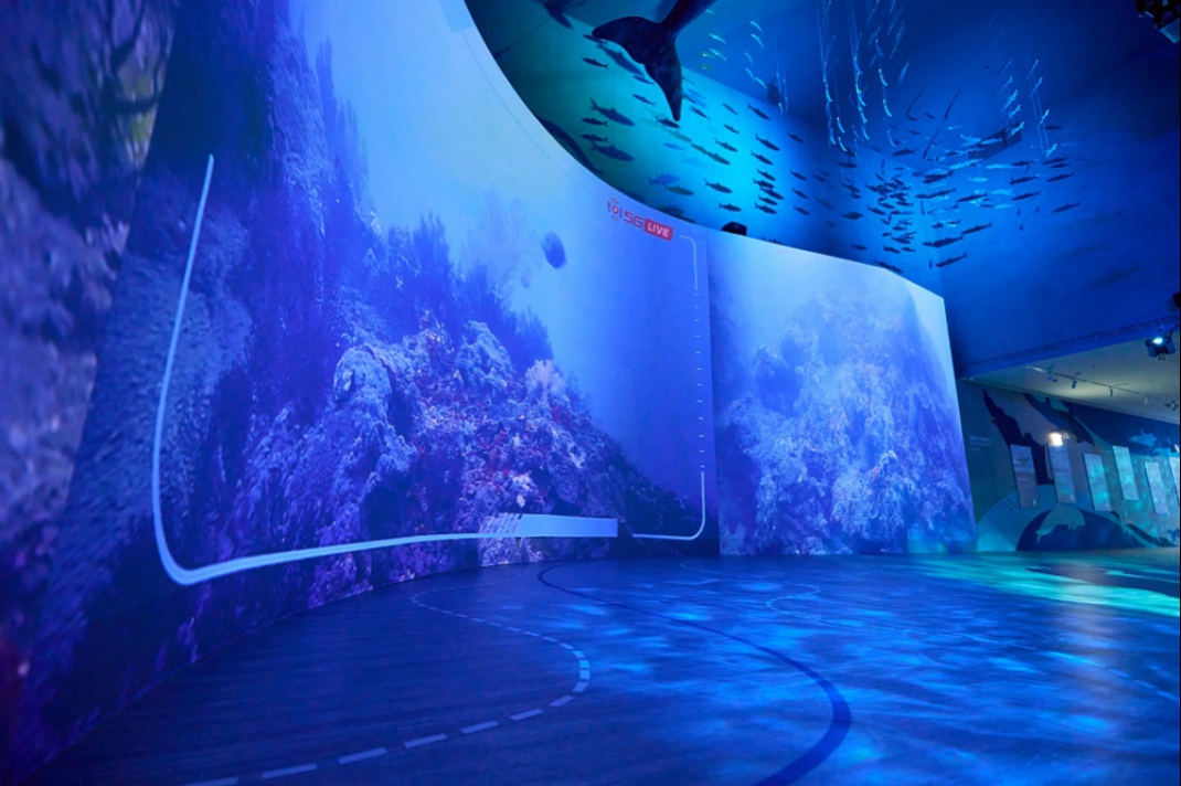 • 「潮境之宾」巨幕迎宾区:结合5G传输技术将海科馆所复育的海底美景即时呈现